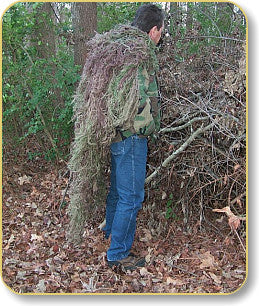 Use as a Back Pack Cover, cover an Alice Pack, cover a tree stand or blind, or build a ground blind!. Jute thread attached to a 3 x 4 Nylon Netting.