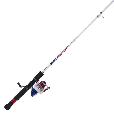 Your purchase of this combo supports the folds of honor foundation. This red, white, and blue 20 size spinning reel is pre-spooled with 8 lb. Cajun Line and is matched to a 6í´ 2-piece medium-action rod.