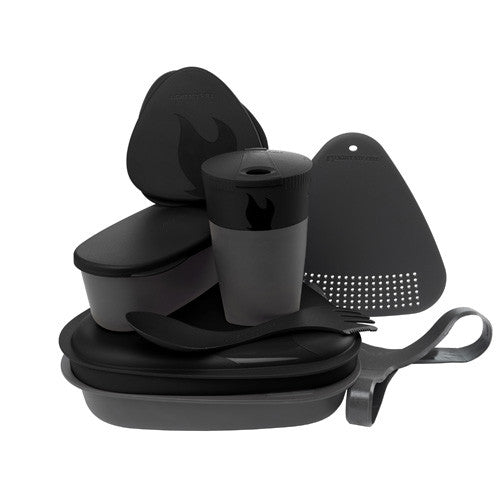 The most recent version of the popular messkit is the ideal kit for your backpack, boat, bike, or picnic basket. It has all you need to prepare and eat a meal in all outdoor environments. The MealKit 2.0 comes with a number of features and functions: two plates, a foldable Pack-up-Cup with a lid (260ml), a combined strainer and cutting board, a Spork (spoon-fork-knife combo), and two waterproof SnapBoxes in different shapes and sizes. Also comes with a harness to keep everything neatly packed.