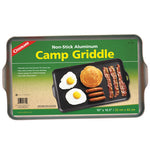 Coated heavy gauge aluminum griddle features a non-stick surface for easy clean up. Extends over two burners of most camp stoves providing adequate room for making a full course breakfast - the outdoors way!