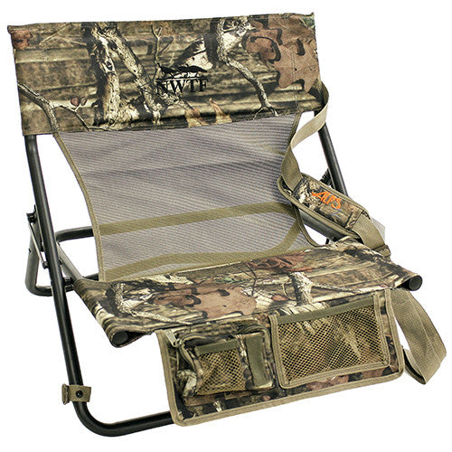 The Turkey Chair MC (More Comfort!) is a wider version of the Turkey Chair, giving you 4 more inches for extra comfort. Just like the Turkey Chair, the MC model also sits low to the ground to keep you hidden and relaxed while you're waiting for the next turkey to sneak through the field. The sturdy powder coated steel frame is durable and supportive so the chair can make the trip with you time and time again. Also included on this model is a Call Organizer pocket on the front of the chair to keep your most important gear close and easily accessible. The Turkey Chair MC folds flat for easy transporting when you need to move to a new spot quickly. While the name of this chair is the Turkey Chair, it also works great as a predator hunting chair.