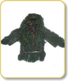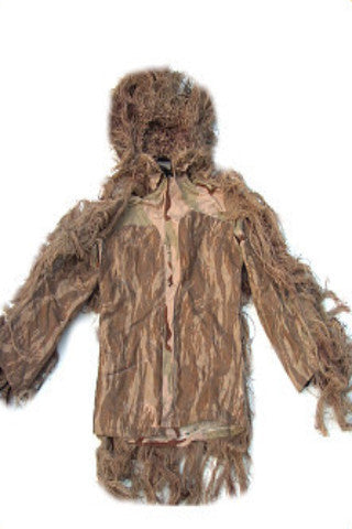 The Front Chest area and the forearms have a 1000 Denier Cordura Plus material sewn on for those long Sniper crawls. The Cordura "Plus" means it has a Urethane Coating for water repellency. The Hood is build the same way we build our Ghillie Poncho by hand tying the Jute thread to a 1"x1" netting, and then sewing this to the Jacket. This design keeps you cooler, allowing the wind to pass through, and also allows for better hearing. All the buttons on the chest have been removed, and Velcro has been sewn on to secure the jacket closed. This makes your crawl more comfortable with out feeling the buttons. ( Boxed Weight 6 lbs.)