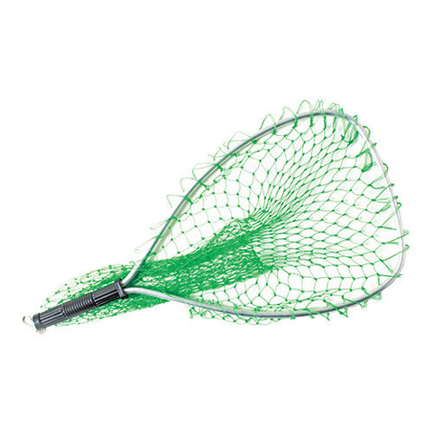 The Eagle Claw Trout Net with Retractable Cord features a sturdy aluminum frame, molded grip, and metal snap clip. The dimensions of the net opening are 14-1/2" X 11" X 19".